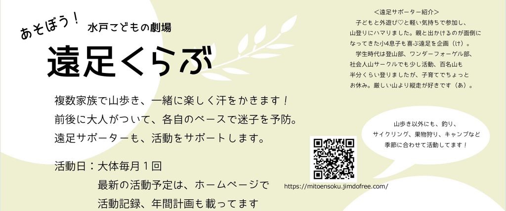 地元の山に登ったり、釣り、サイクリング、果物狩り、キャンプなどをみんなで計画して、いろんなことを体験する遠足くらぶです。家族だとハードルが高くても、皆で行くと楽しい。