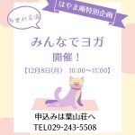 2025年9月26日 / 最終更新日時 : 2025年11月5日 mito-kodomo お知らせ 【ぽかぽかつどいの広場講座(11月)】 ぽかぽかつどいの広場では、毎月1回講座を開催しています。お申込み制となっております。申込サイトReservaを利用しています。 11月 親子ヨガ 赤ちゃんとスキンシップをとりながら親子で楽しみます。大好きなママに触れてもらうことで赤ちゃんも安心し喜びます。今この時期にしかできない親子のコミュニケーシ... 続きを読む | Share it now!